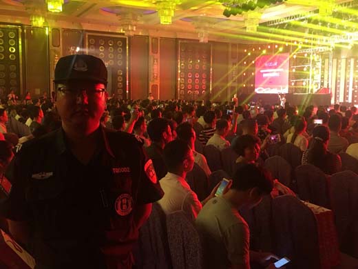 2017年7月31日我司派駐特勤安保人員16人參加了安徽人人家能源戰略聯盟授權儀式安?;顒印;顒又形宜菊J真安排、專業服務深受客戶和明星海鳴威的認可和表揚。