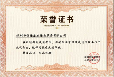 熱烈祝賀鐵保宏泰保安公司榮獲深圳保安行業抗疫先進單位