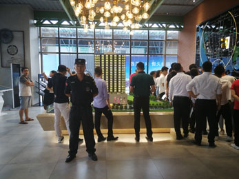 2018年8月15日我司鐵保宏泰保安公司派駐安保人員18人協助客戶唐商·前海雙悅開展售樓營銷活動的秩序維護活動。
