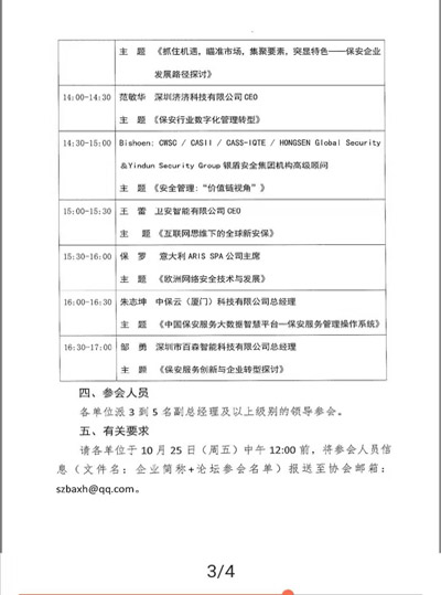 請各單位于10月25日(周五)中午12:00前,將參會人員信息(文件名:企業簡稱+論壇參會名單)報送至協會郵箱: szbaxh@qq.com。